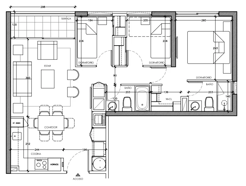 - 3 Dormitorios + 2 Baños - 62,31 m²