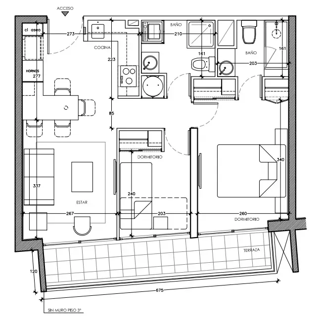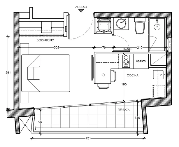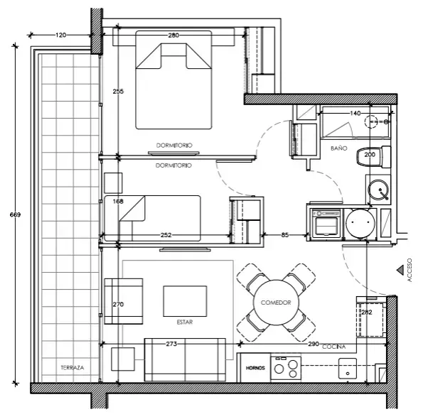 - 2 Dormitorios + 1 Baño - 45,53 m²