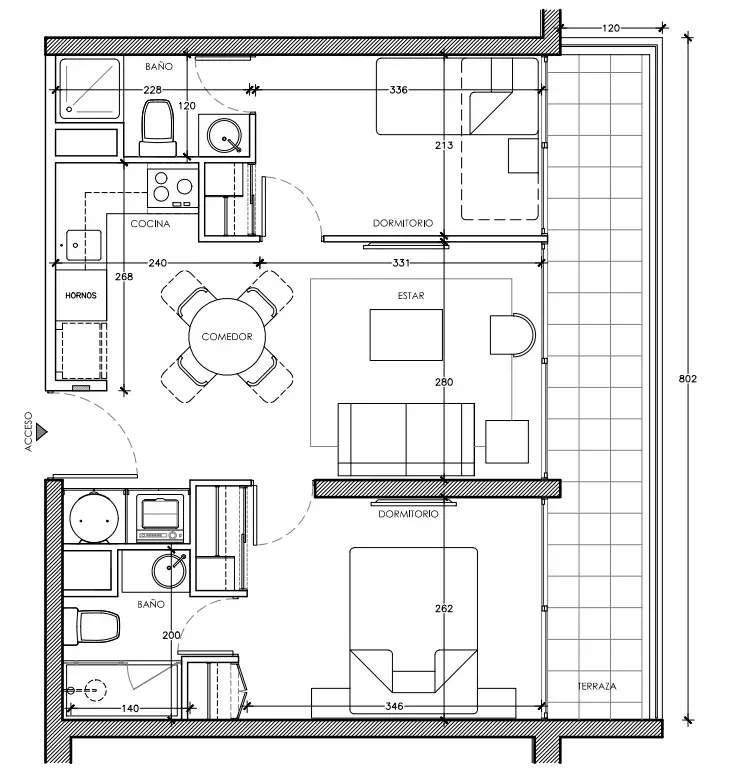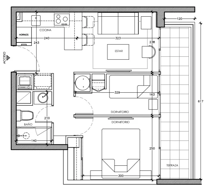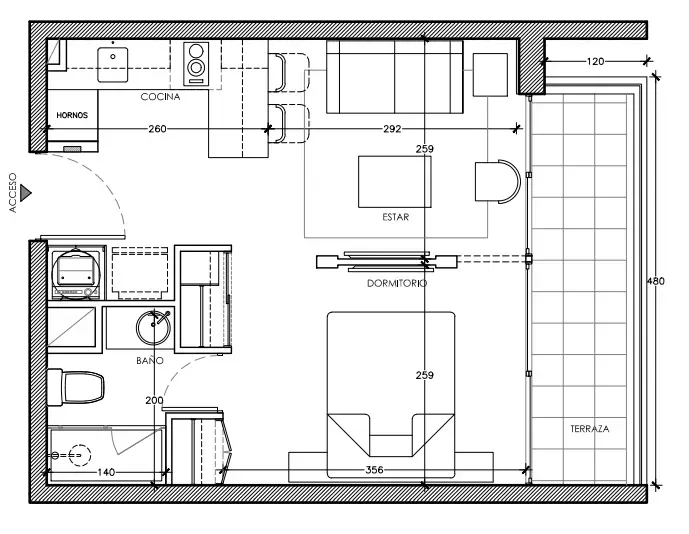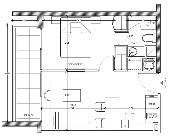 - 1 Dormitorio + 1 Baño - 38,43 m²